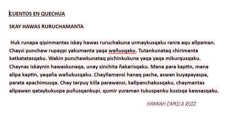 POEMA EN QUECHUA LEÍDO POR EL ALUMNO DIAZ ZAPATA CRISTOFER DARIO